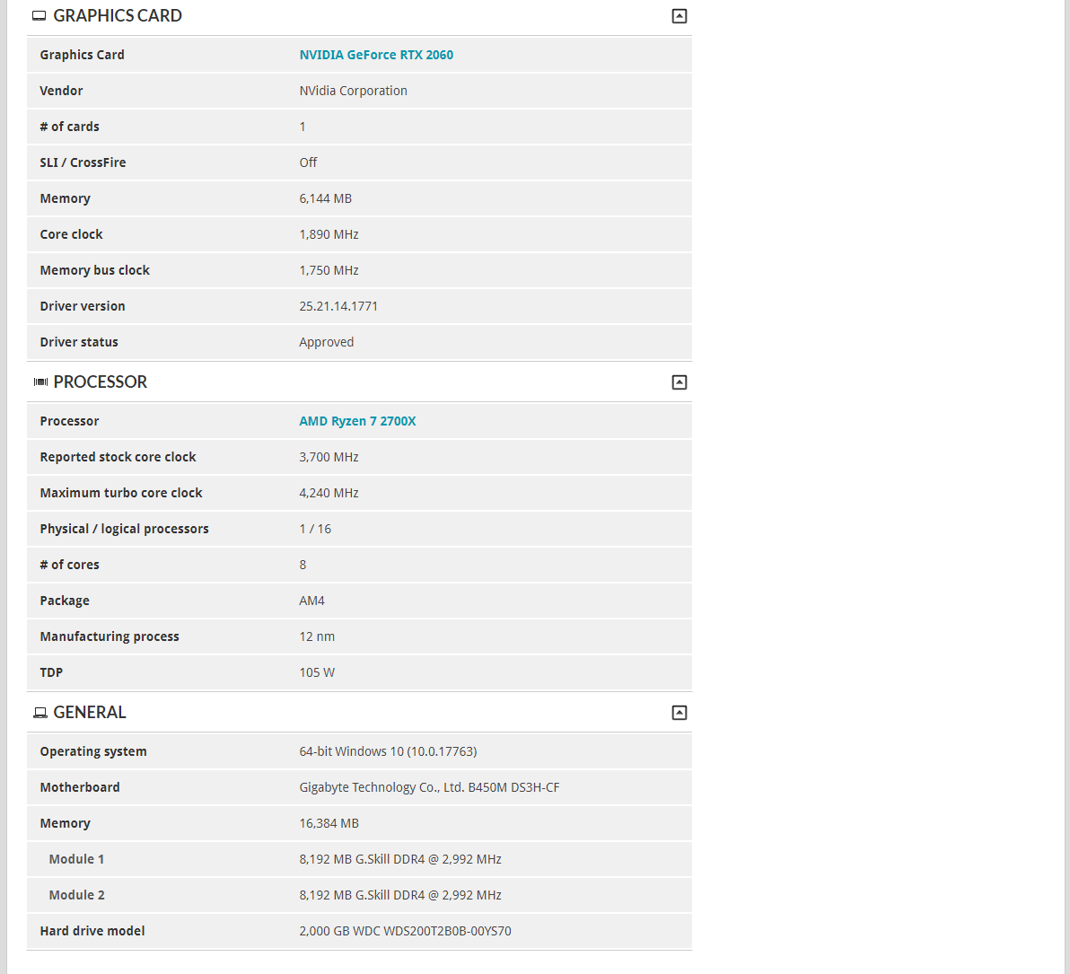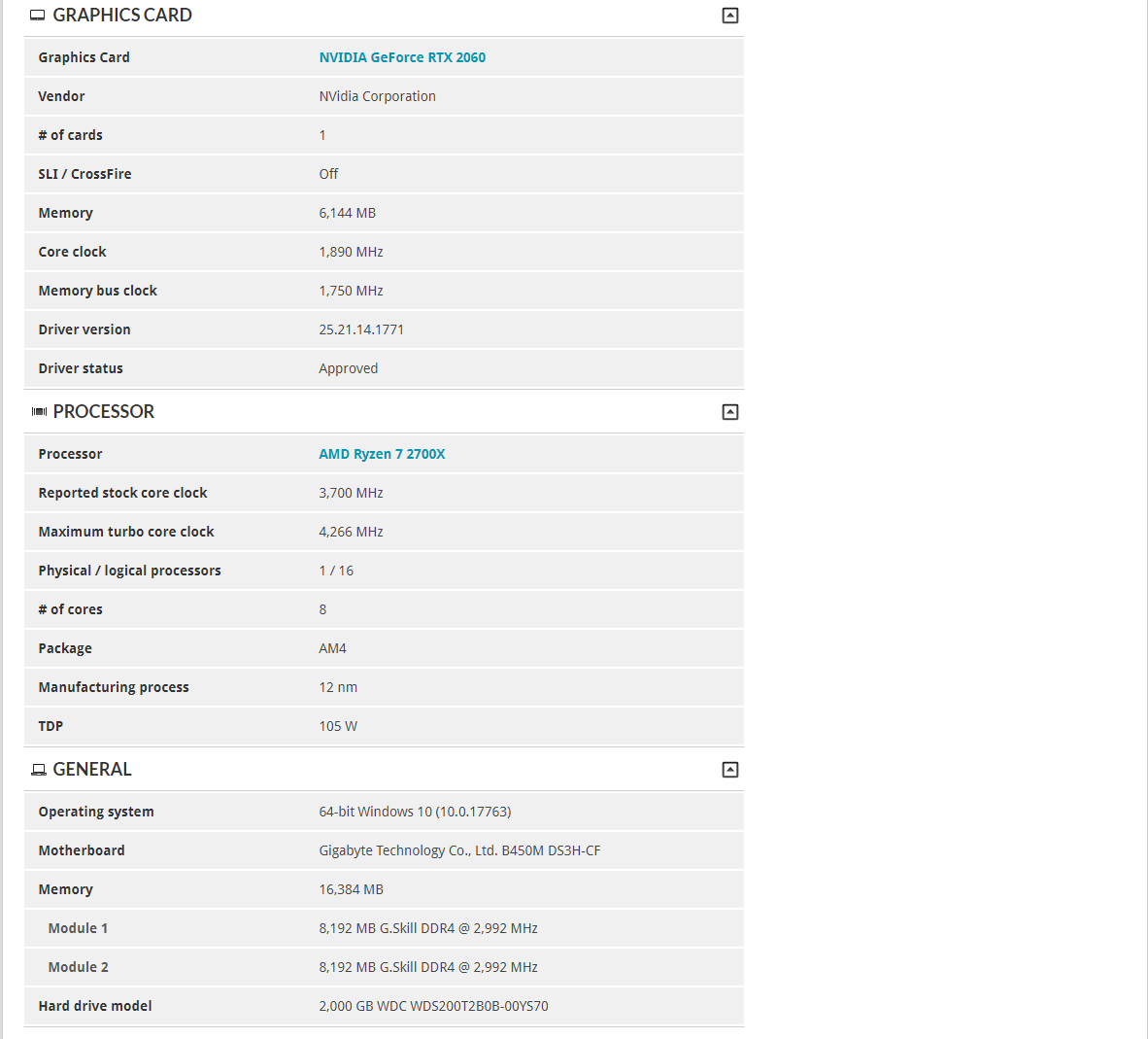 - CPU: AMD RYZEN 7 2700X 8-Core 3.7 GHz (4.3 GHz Max Boost)