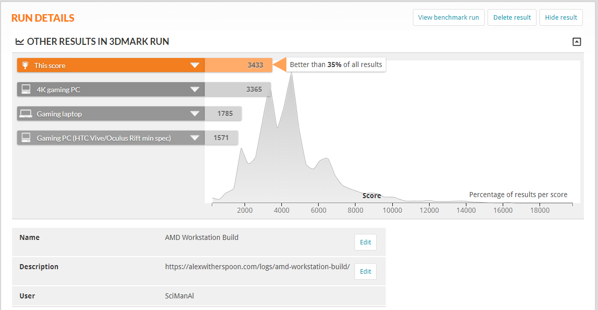 Check out the 3dMark Time Spy Extreme Score of 3,433 here: http://www.3dmark.com/spy/5951986