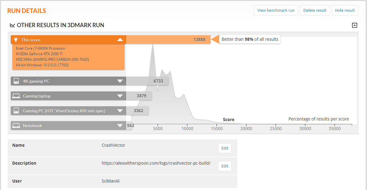 Check out the 3dMark Score of 13,888 here: https://www.3dmark.com/3dm/32056351?