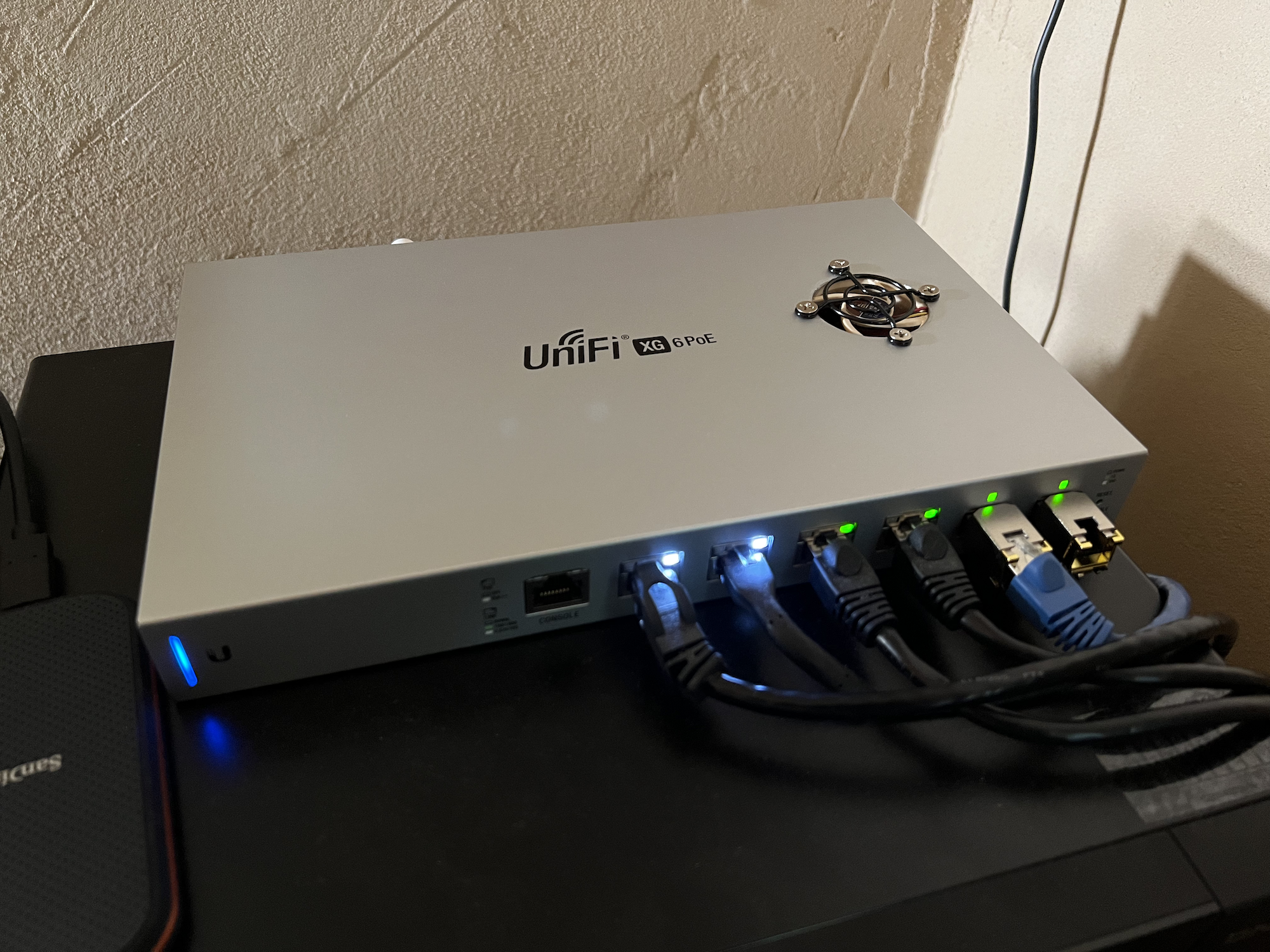 My home network runs UniFi equipment, and I demand 10GB POE capable ports at every port in the home. Because I can. That’s a tough requirement though, since switches are still rare that handle that. Then came the US-XG-6POE switch some years ago. A marvelous tease of a switch. Let’s all take a moment of our day to just stare at this thing. It really just needs to be a 10 port + 2 uplink SFP switch to be just about perfect. In this configuration, I operate three of them with fiber links between them to create a ring, allowing STP to down the loop link. This allows for a strong 10GB backbone and one switch at a time can reboot without any major impact or outage.