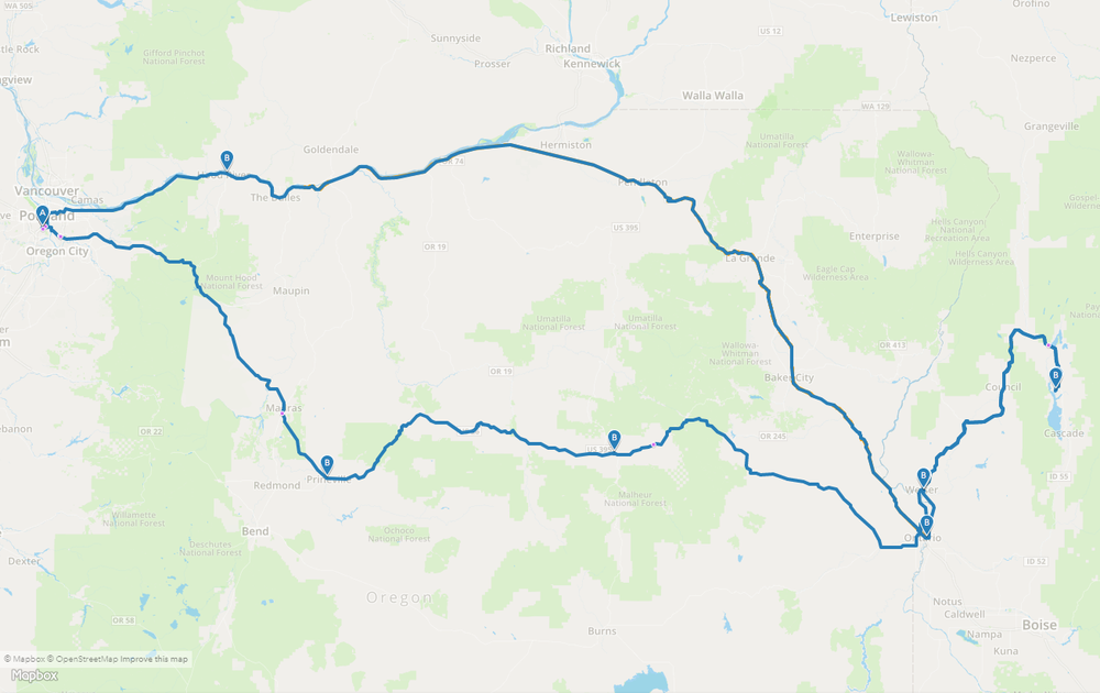 Here was the route we drove in the Tacoma from Portland, Oregon to the Idaho Cabin near Donnelly.