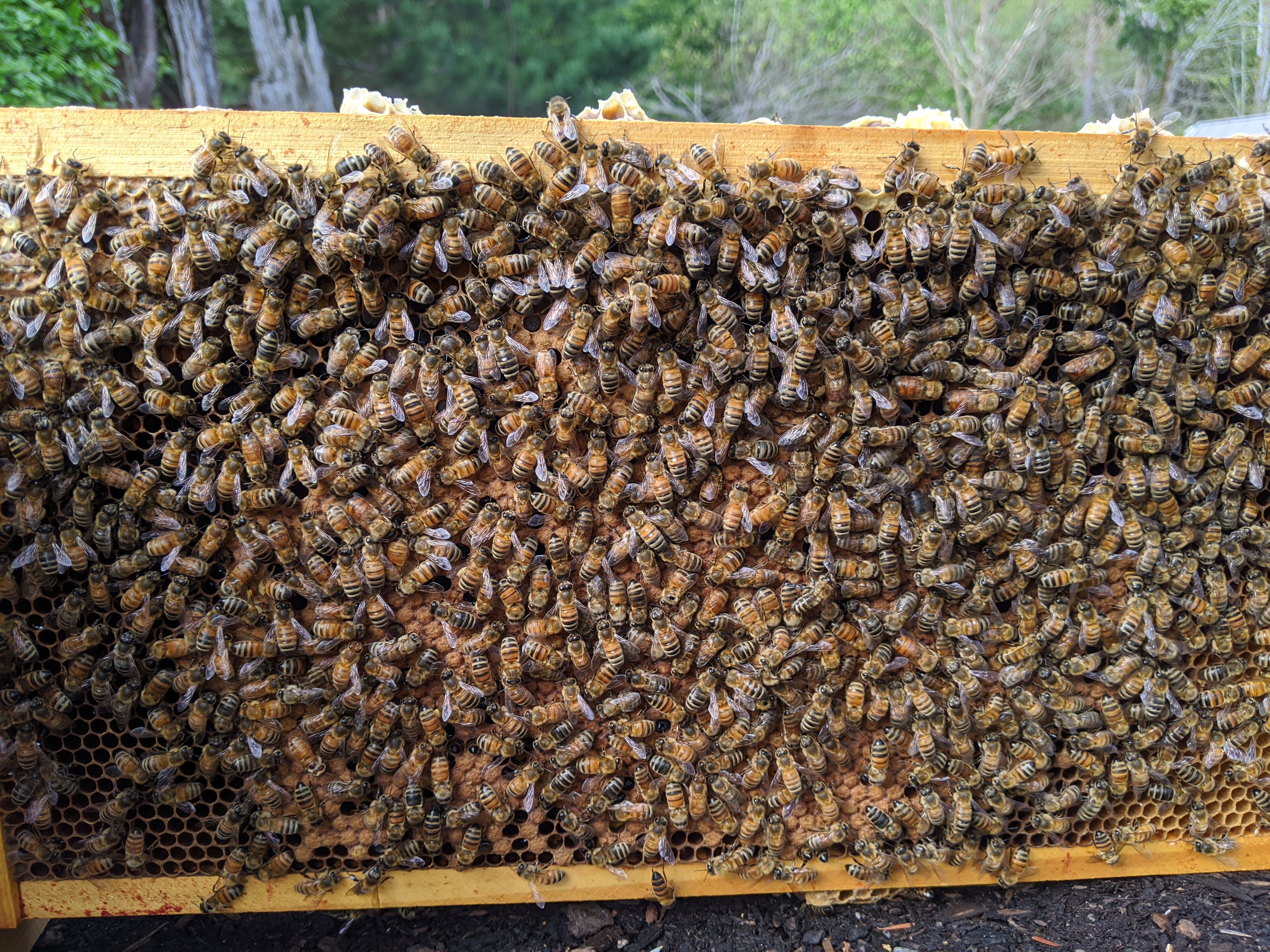 So beehives, equipment, and all that doesn’t get anyone very far without some bees! - Here we were, one car at a time picking up our NUC packages, containing several frames of bees that has established from bridgetownbees which were sourced from local apiaries in the area with survivor stock bees that had been adapted to our local area namely; Old Sol Apiaries and Foot Hills Honey. They are awesome to work with, though with Coronavirus in full swing, we didn’t get the normal time to talk, and pick out species of bees. I got a more ‘random’ selection!